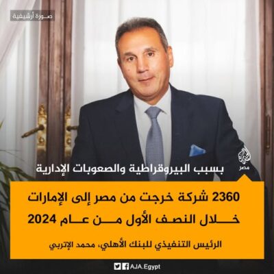 الرئيس التنفيذي للبنك الأهلي المصرى محمد الإتربي يقول إن هناك 2360 شركة خرجت من #مصر إلى #الإمارات خلال النصف الأول من عام 2024 بسبب التسهيلات في بيئة الأعمال هناك مقابل صعوبات إدارية وبيروقراطية تواجه المستثمر...